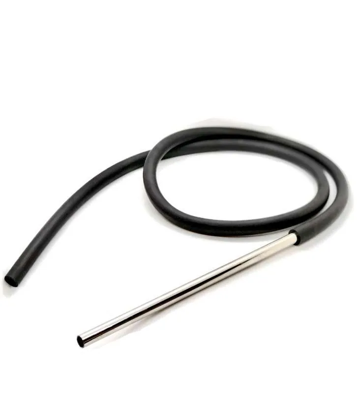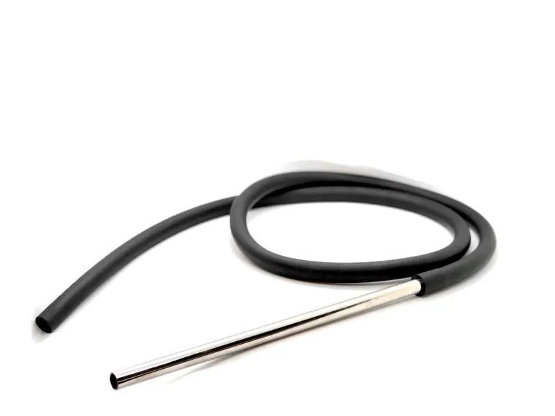 Металлический мундштук смотрится стильно и аккуратно. А чёрный силикон по стилю подойдёт под любой кальян. Обратите внимание, в шланге не предусмотрен коннектор для шахты. Этот шланг подойдет к тем кальянам, у которых коннектор для шланга встроен в шахту, а силикон надевается на него снаружи.