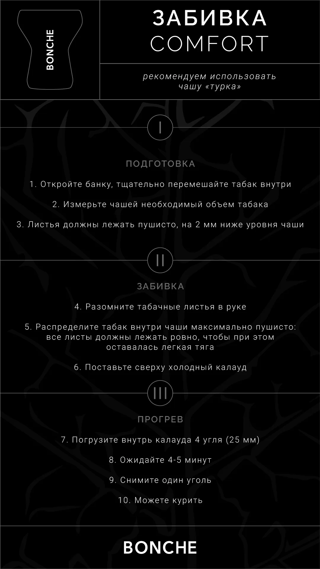 Bonche Cherry 30 г — это премиальный табак для кальяна, созданный на основе отборного сигарного листа. Продукт отличается высокой крепостью и глубоким, насыщенным вкусом, который оценят опытные любители крепких забивок. Основной акцент сделан на натуральный ароматизатор спелой садовой вишни, который раскрывается ярко, но не навязчиво, оставаясь естественным и благородным.